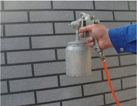 待防潮底漆干透后即可进行真石漆的喷涂施工,基本施工方法主要有以下两种: